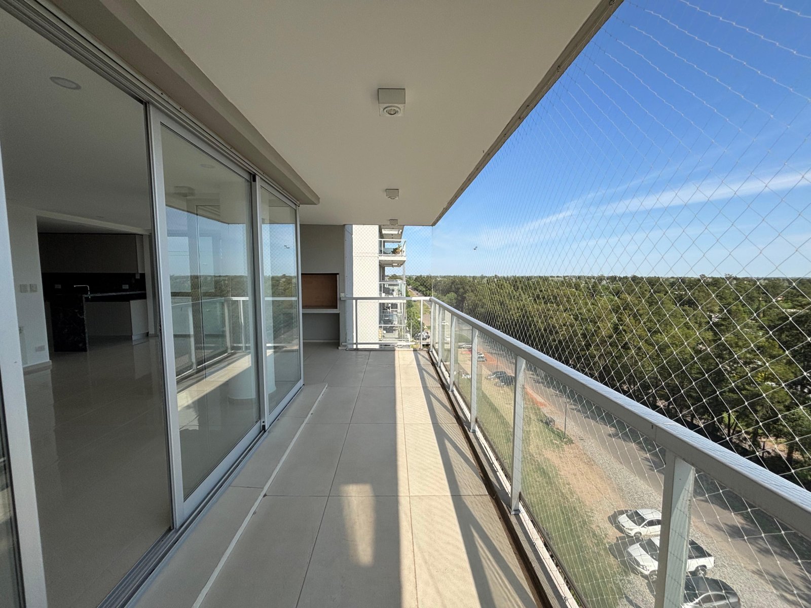 Departamento de 3 dormitorios en la mejor zona residencial de Fisherton, frente a Aldea Lago y con un acceso perfecto hacia todos los puntos de la ciudad por Av. Newbery. La unidad se encuentra en el piso 6 con vista totalmente despejada a hermoso espacio verde. Ingreso principal al living-comedor con cocina semi separada, salida inmediata a balcón aterrazado con posibilidad de parrillero. Sector intimo con 3 dormitorios, todos con salida al balcon al contra frente con vista despejada y el dormitorio principal con baño en suite y vestidor. Cuenta además en sector intimo con otro baño secundario completo con bañera. Lavadero independiente. Cuenta ademas con dos cocheras. Terminación de excelente calidad, con pisos de porcelanato en combinación con madera de ingeniería en espacios íntimos, aberturas de aluminio con DVH de alta prestación, cocina con mobiliario completo de alacena, bajo mesada, bacha de acero inoxidable doble, anafe y horno diferenciado eléctrico, mesada de granito negra y banquina en aluminio, espacio técnico para heladera, microondas y lavavajilla. Baños con loza sanitaria, griferías de primeras marcas y toalleros colocados. Todos los dormitorios cuentan con placares con puertas corredizas de piso a techo con interiores diseñados. Agua caliente por caldera y climatización por radiadores más aire acondicionado en todos los ambientes. Edificio con Amenities completos ( Quincho/Zoom - Pileta - Gimnasio )